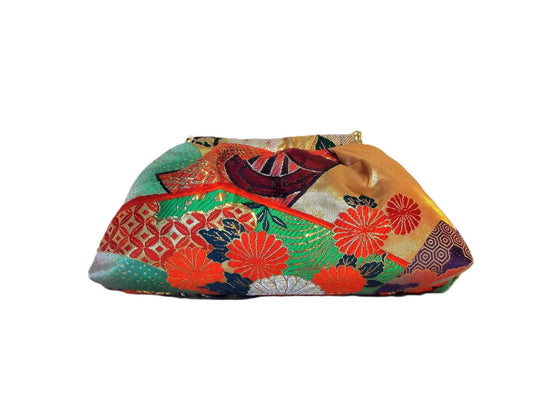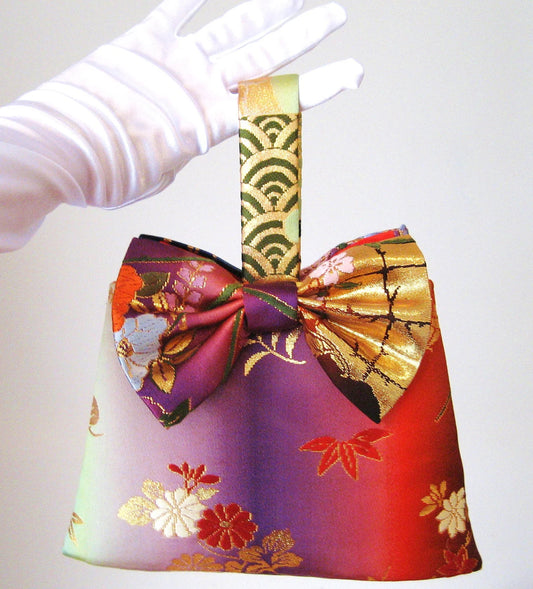 Hochzeitstasche mit Vintage-KIMONO, Goldbrokat-Stickerei, Herbstfarbe, Marineblau, Lila, Rot, Gold, Opal, Handtasche