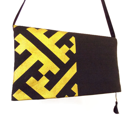 3-Wege-Clutch Schultertasche KIMONO schwarz gold OBI SAYAGATA versandfertig