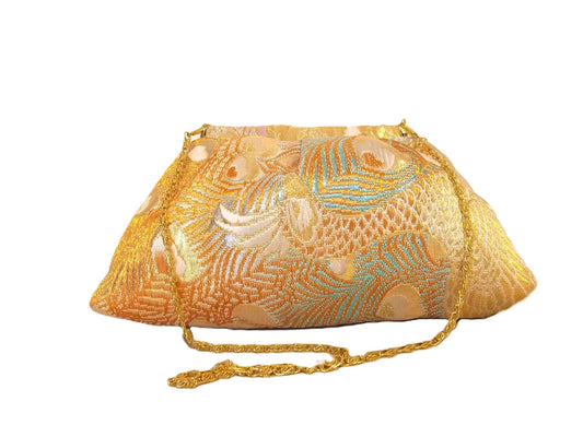 Hochzeitsgeldbörse mit OBI Goldbrokat Pfauenfeder gold beige elfenbein rosa weiß blau lila grün Handtasche versandfertig