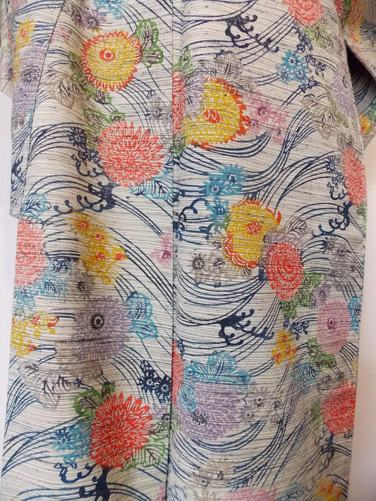 Vintage lässiger KIMONO TSUMUGI BINGATA handgefärbte Seide grau Mulch Farbe Blumen Welle Größe Medium versandfertig