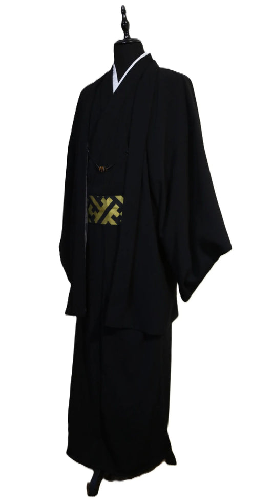 Herren Kimono Haori Set XL matt schwarz Krepprücken Satingewebe versandfertig