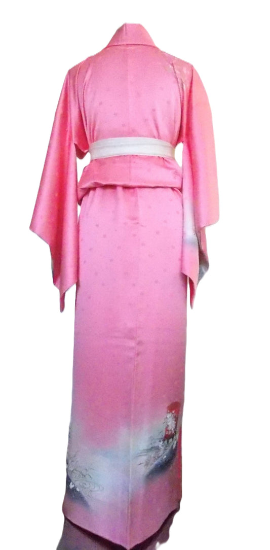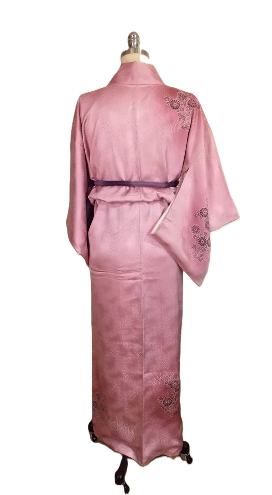 Vintage TSUKESAGE KIMONO rosa Seide Chrysanthemenseide halbformeller Kimono Größe S versandfertig