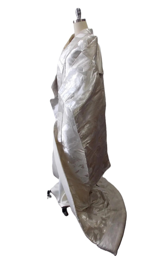UCHIKAKE Hochzeit Kimono Robe Seide Gold Brokat weiß Platin Silber Elfenbein Kranich Größe frei Versandfertig
