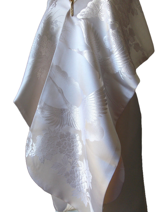 KIMONO Schal Hochzeit UCHIKAKE Seidenbrokat Elfenbeinweiß Kranich Pfingstrose Chrysantheme Pflaumenblüte Größe frei versandfertig