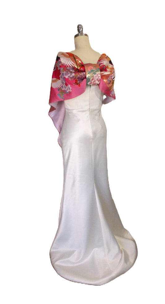 KIMONO Schal Hochzeit Vintage UCHIKAKE Seide Goldbrokat Pink Fuchsia Abstufung Kranich SAKURA Kirschblüte Blume Größe frei auf Bestellung gefertigt