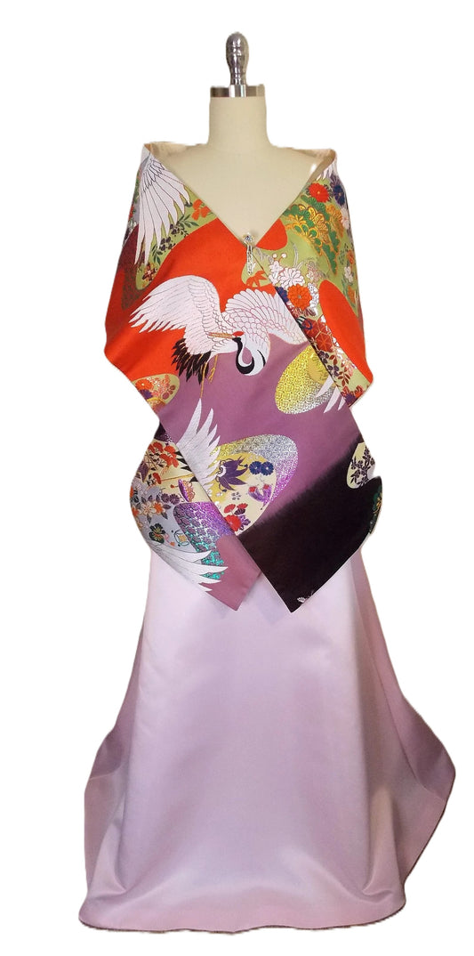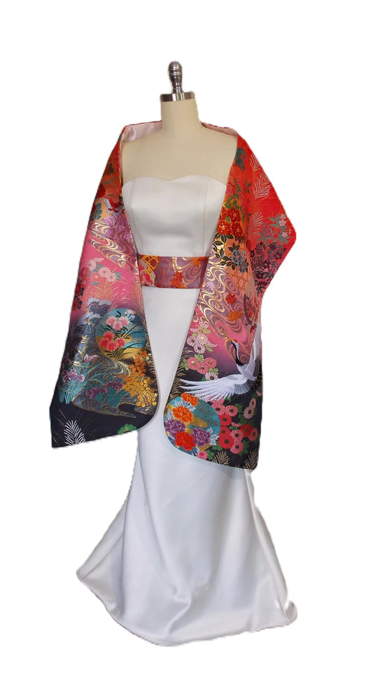 KIMONO Schal Hochzeit Vintage UCHIKAKE Seide Gold Brokat Rot Rosa Lavendel Kohle Abstufung Kranich Multicolor Blume Größe frei versandfertig