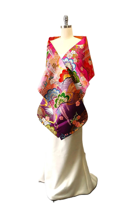 KIMONO Schal Hochzeit Vintage UCHIKAKE Seide gold Brokat lila orange Bordeaux creme grün weiß Kranich Blume lahm versandfertig