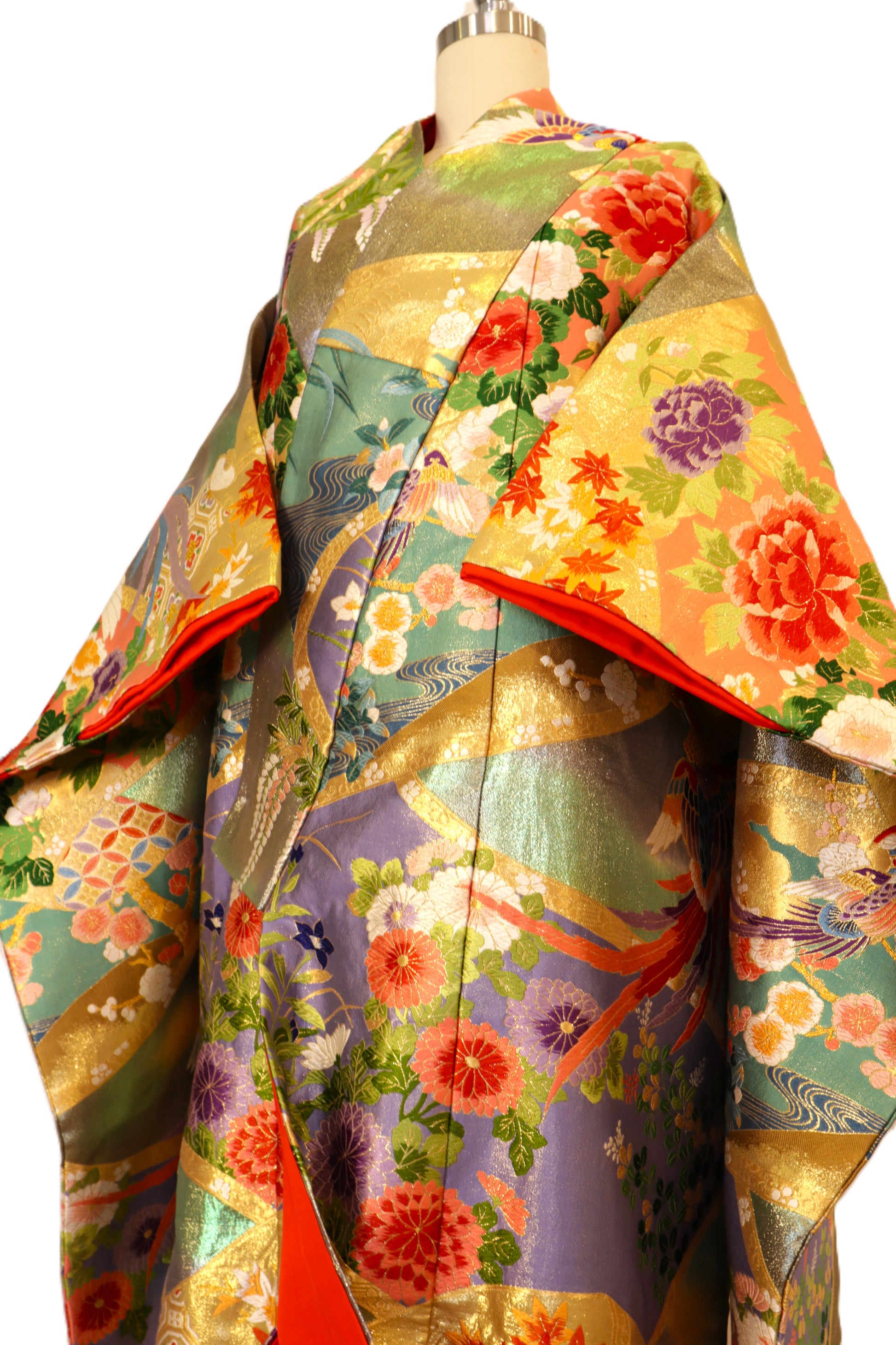 Auspicious phoenix motifs and vibrant Japanese flowers add a rich sense of celebration and timeless beauty.