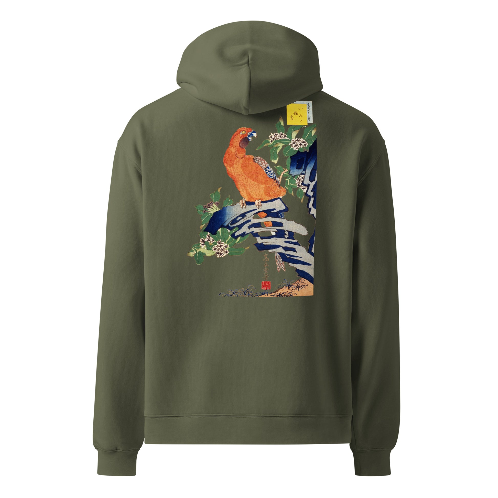Boxy Fit Unisex Hoodie – Japan Arts UKIYOE Parrot